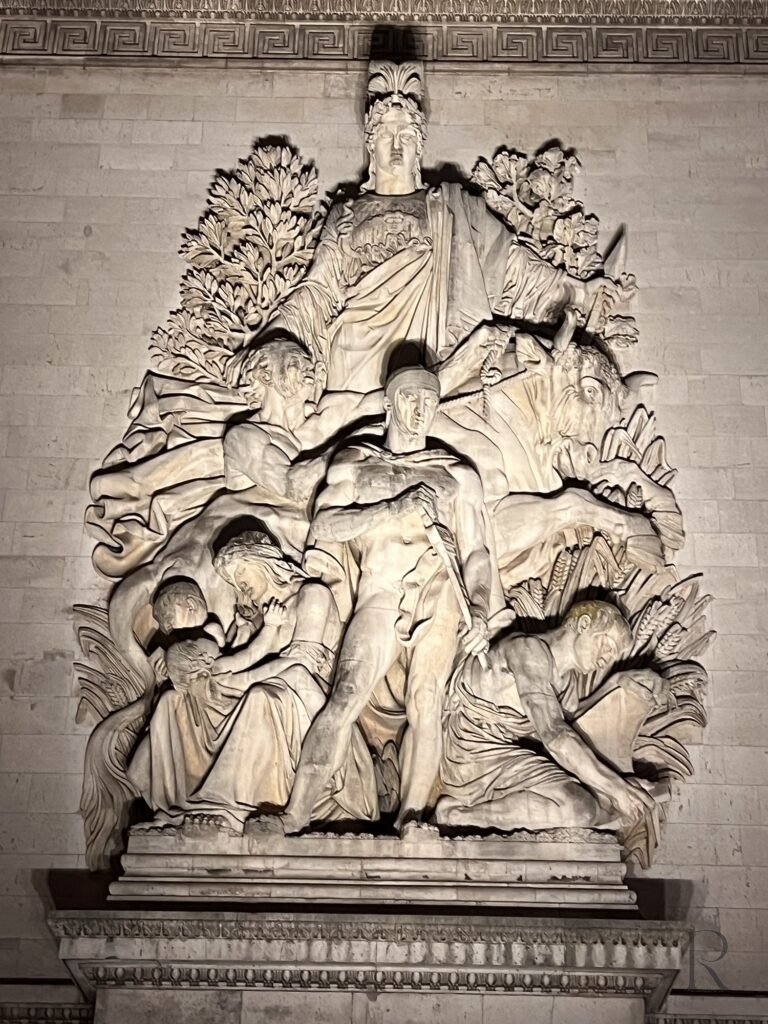凱旋門高49.54公尺,寬44.82公尺,厚22.21公尺,是世界上最大的凱旋門之一,四面巨大的浮雕分別象徵:
