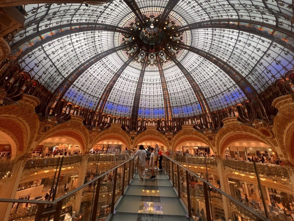 拉法葉百貨(Galeries Lafayette),又有人說是老佛爺百貨,因為Lafayette發音跟老佛爺相似。這裡是一座把「日常」與「華麗」融合得最自然的城市,你可能以為它只是百貨公司,但當你真正走進去、抬頭看見那座金色穹頂時,這裡是一座被包裝成百貨的藝術殿堂。