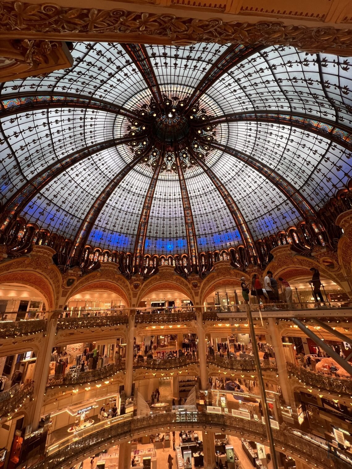 拉法葉百貨(Galeries Lafayette),又有人說是老佛爺百貨,因為Lafayette發音跟老佛爺相似。這裡是一座把「日常」與「華麗」融合得最自然的城市,你可能以為它只是百貨公司,但當你真正走進去、抬頭看見那座金色穹頂時,這裡是一座被包裝成百貨的藝術殿堂。