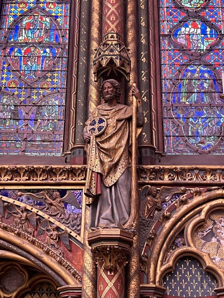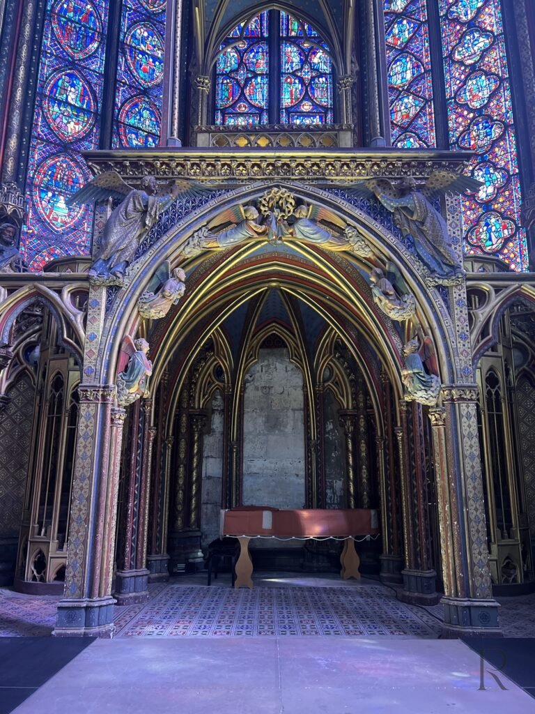 聖徒禮拜堂建於 1243–1248 年,是路易九世為了收藏「荊棘冠冕」(現藏於羅浮宮)而建的私人禮拜堂, 所以它不是為了向大眾展示而建。教堂的建築風格是高哥德式(Rayonnant Gothic),以極致的垂直感與光線為核心。