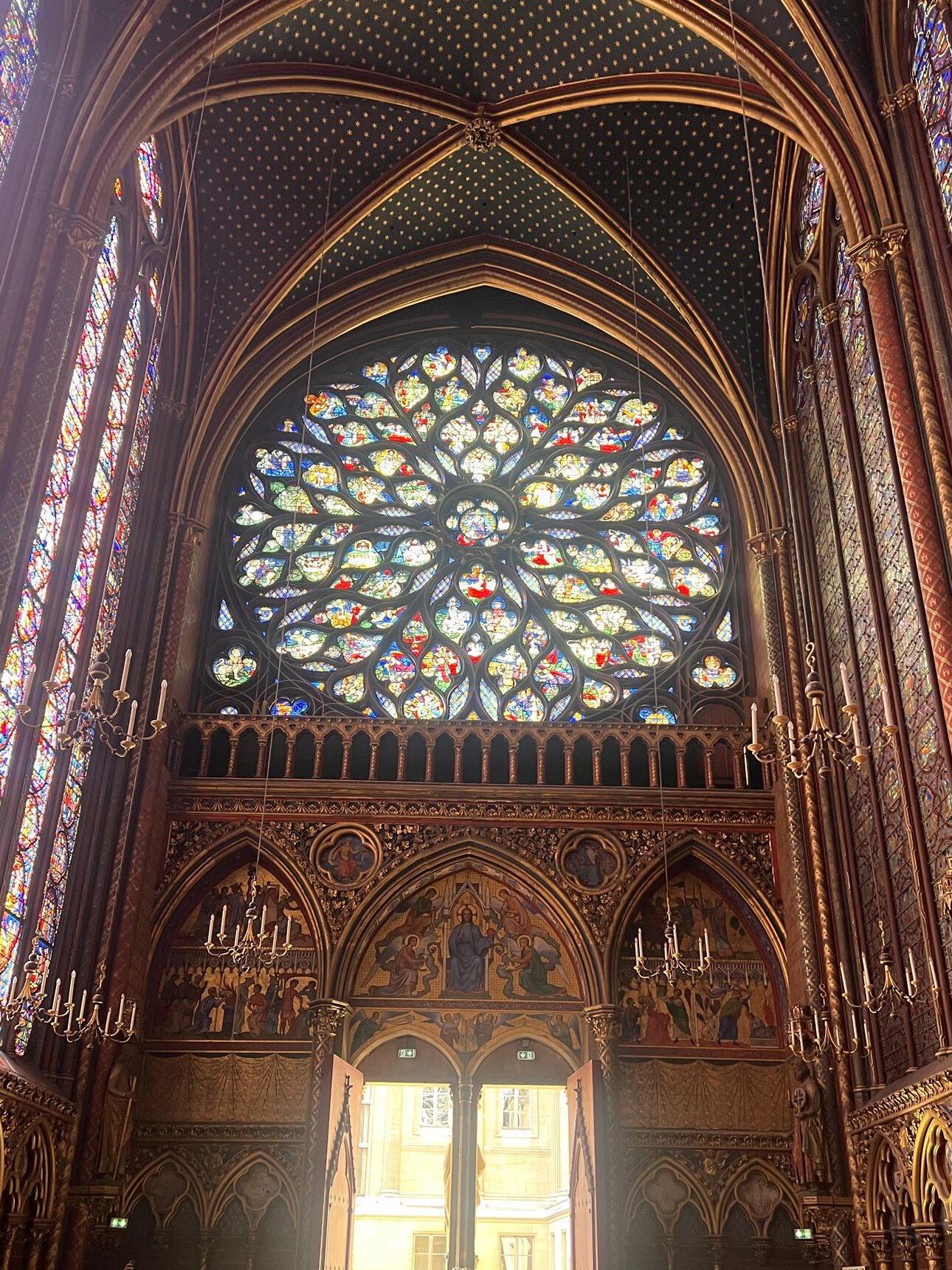 我特別喜歡站在中央,抬頭看著那片巨大的玫瑰窗, 那一刻,你會覺得巴黎的喧囂都被隔在外面, 只剩下光、顏色、還有一種說不出的平靜。