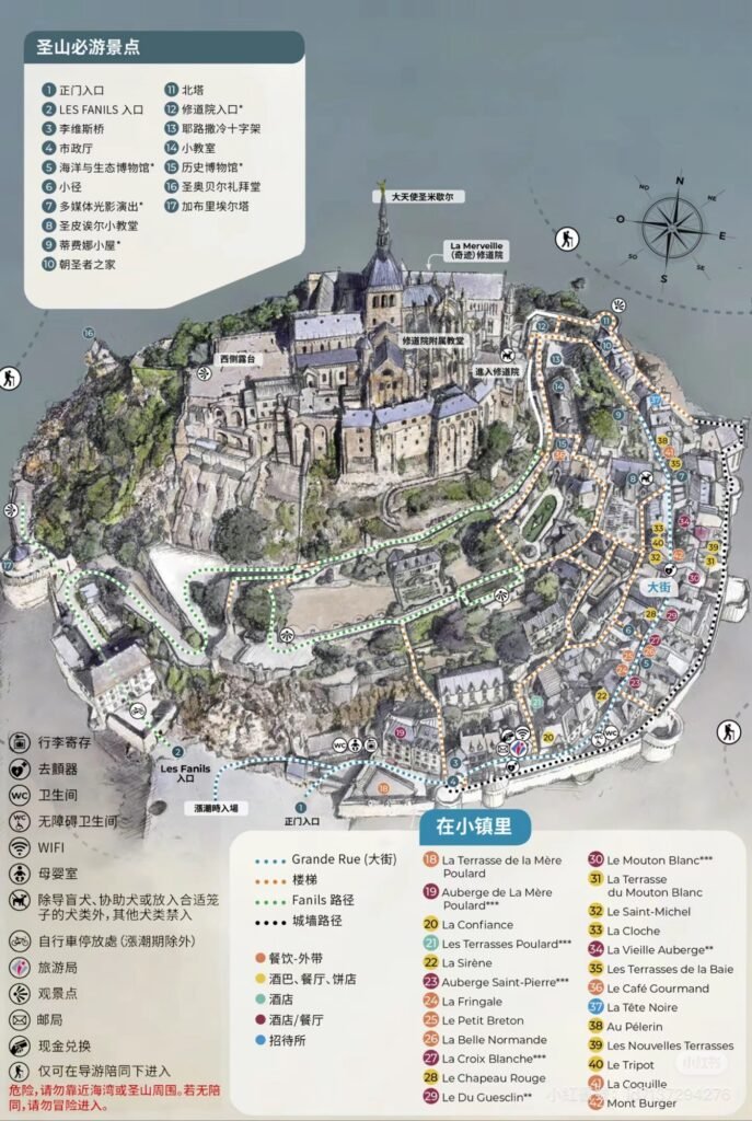 - 美食體驗:別錯過當地特色料理,如奶油煎蛋捲(La Mère Poulard)與鹽沼羊肉