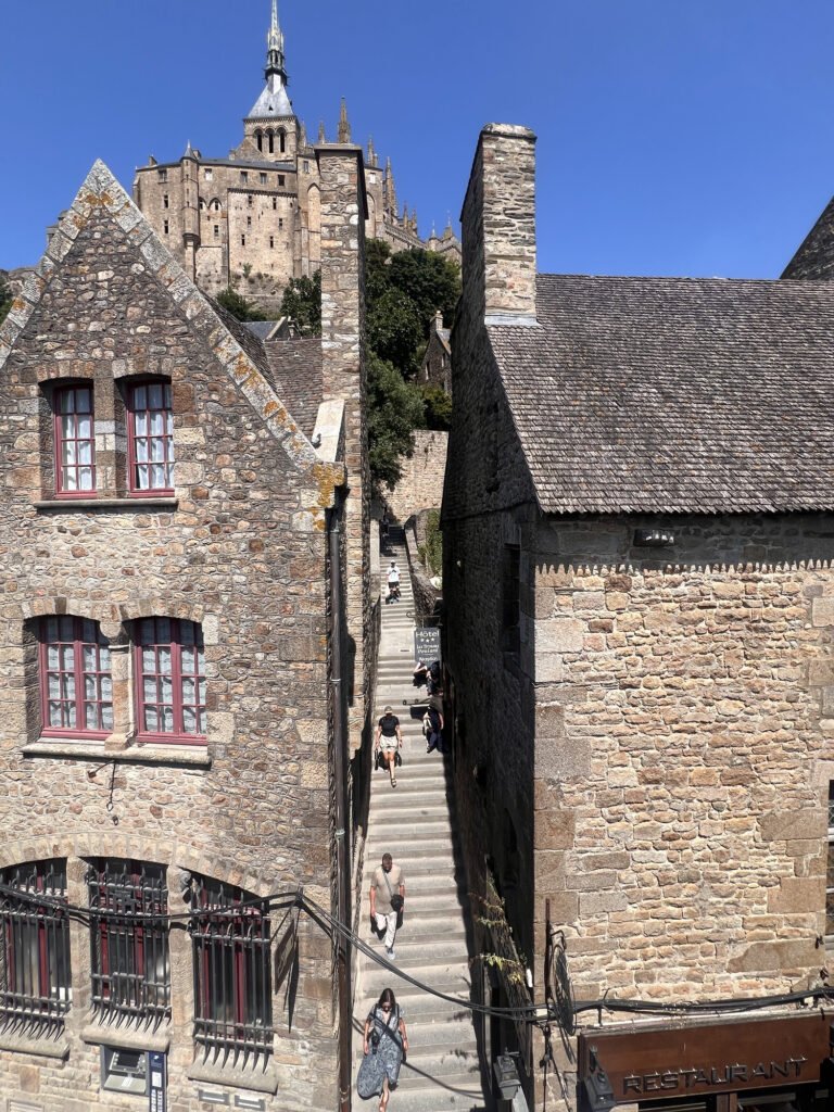 走在蜿蜒的石板路上,兩旁是熱鬧的紀念品店與餐廳,越往上越能感受到莊嚴的氛圍,後來登上修道院俯瞰四周,海與天交織成一幅壯麗的畫面,讓人忍不住屏息,這裡不只是旅遊景點,更像是一場心靈的朝聖,讓我在旅途中體會到「風景與心境」的交融。