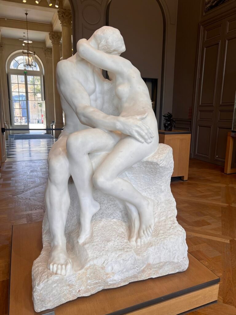 羅丹知名作品之一,與《地獄之門》的痛苦不同,《吻》這個作品是一種溫柔的力量,兩個人緊緊相擁,身體自然地貼合,像是世界只剩下彼此,羅丹沒有把愛情雕成完美的形狀,而是雕成一種「正在發生」的瞬間,你會看到肌肉的張力、呼吸的節奏、情感的流動—— 這不是浪漫,而是生命的熱度。