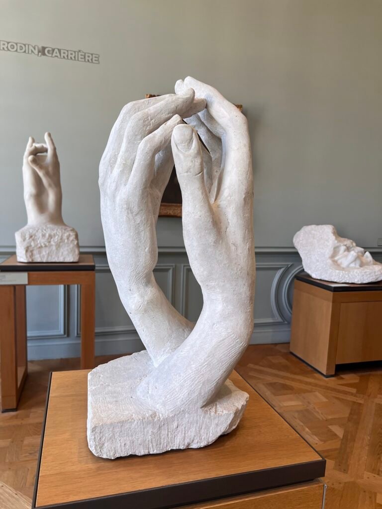 羅丹的《大教堂》不是一座建築,而是 兩隻手,對,我一開始也覺得明明是兩隻手為何取大教堂這個名字,兩隻巨大的石膏手指尖微微相觸,像是在祈禱,也像是在保護某個看不見的核心,這件作品的力量,不在於手本身,而在於 手與手之間的空間。