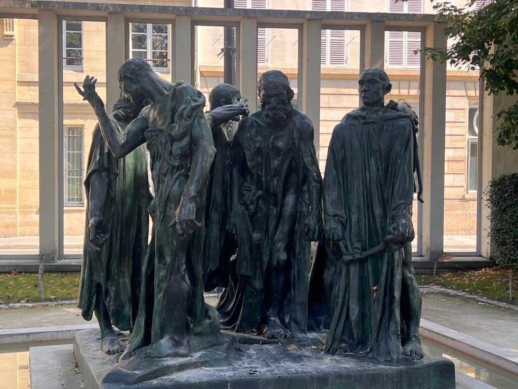 這是羅丹最具情感深度的作品之一,六位市民為了拯救城市,自願走向死亡,羅丹沒有把他們雕成英雄,而是雕成普通人: 有人恐懼、有人悲傷、有人已經接受命運,你能在他們的姿態裡看到「勇氣不是沒有害怕,而是帶著害怕仍然前進」。