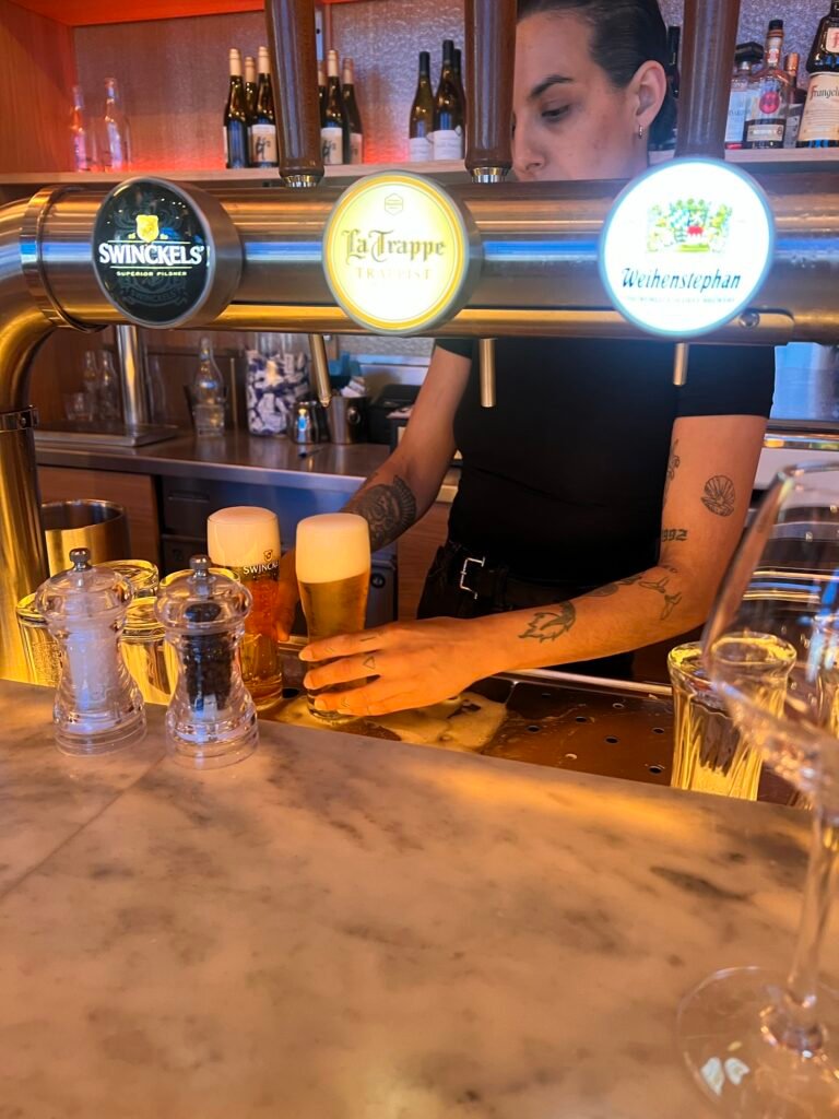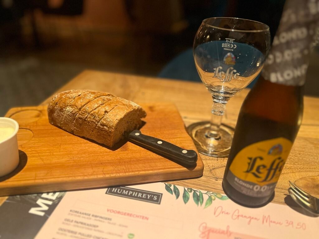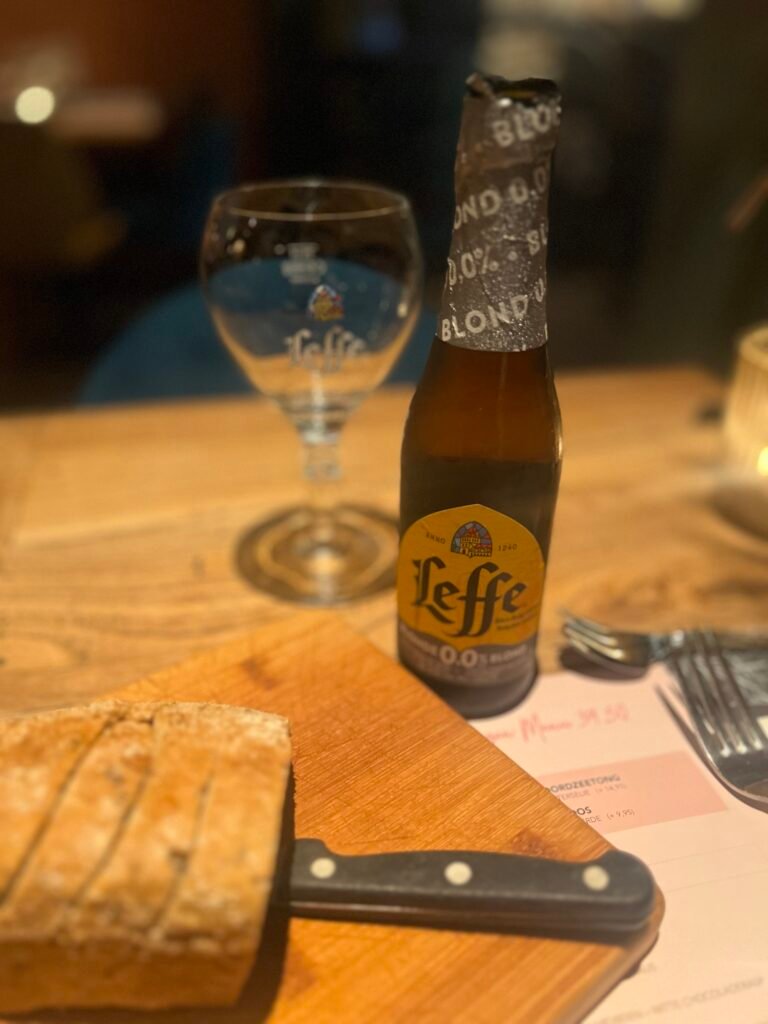 這家點我本來是抱著試試看的,是一家連鎖店,荷蘭主要城市都有分店,Google 評論也不差,加上價格也不是貴得離譜,所以我就walk in進去了,結果讓我很意外,從餐廳的佈置到餐桌上的食物,感覺到用心,這家最經典的就是選三道菜的set menu(前菜,主菜及甜點) ,然後啤酒有滿多選擇,我選的是比利時的修道院啤酒Leffe Blonde。