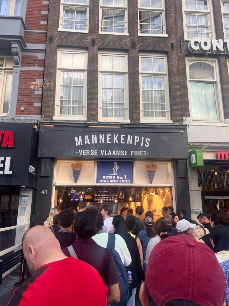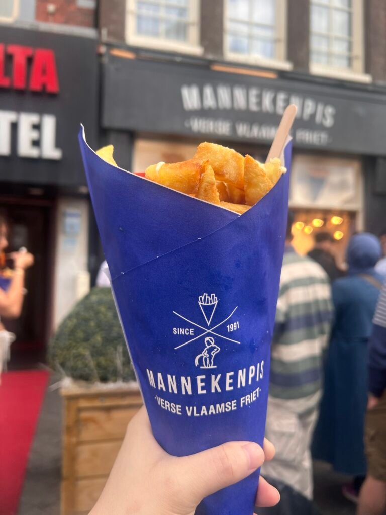 經過好幾次都是大排長龍,有天在等遊船的空檔,就跑去買,使用荷蘭本地馬鈴薯,外酥內軟,特色是提供多達20幾種豐富的醬料選擇,我是選經典的Fritessaus,我是選小份,一開始吃真的很驚艷,但一直吃就會比較膩,感覺份量還是剛剛好就好。
