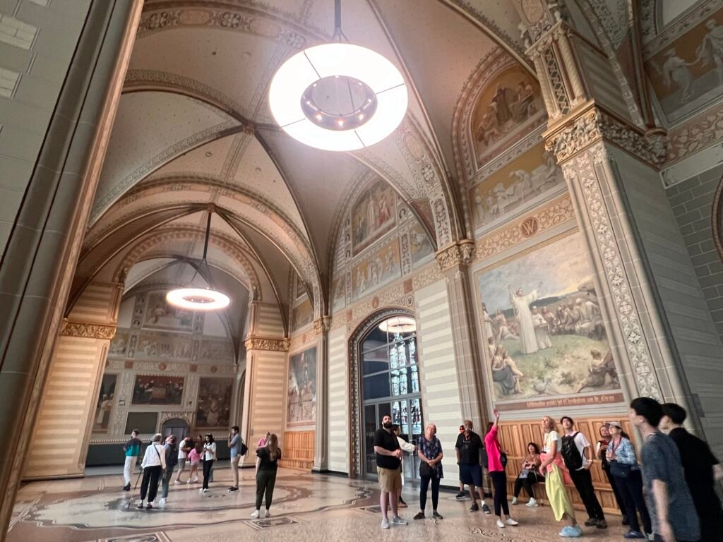 走進Rijksmuseum國家博物館的那一刻,我彷彿踏入了一座時光殿堂,外觀是新哥德式建築(新哥德式建築最初在18世紀中葉的英格蘭興起,區別在於「建材」,新哥德以鋼骨架和鋼筋混凝土為支撐。)整個建築氣勢恢宏,但仔細看有很多細節在其中;而荷蘭文「Rijks」就是指「國家、政府」,但這裡不只是荷蘭的文化寶庫,更是歐洲藝術的心臟之一。