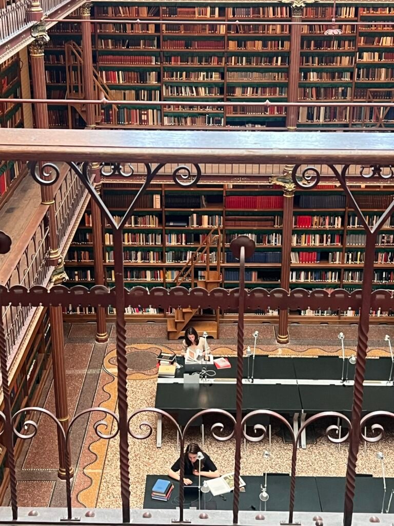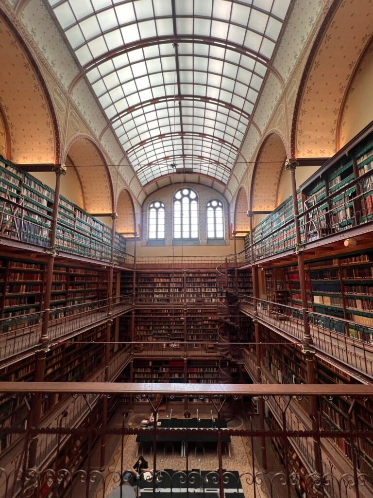 在展覽之間,也發現了幾個靜謐角落:圖書館、咖啡廳、花園;博物館中的「Cuypers Library」這個圖書館更是歐洲最古老的藝術史圖書館之一,書架高聳,陽光灑落在古籍上,讓人忍不住放慢腳步。館內的彩繪玻璃跟建築裝潢都非常值得漫步細細品味。
