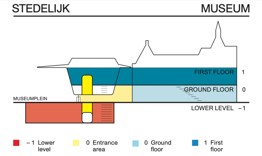 - 地面層:展示1950年前的作品,包括De Stijl、Bauhaus與早期現代主義,可見蒙德里安、馬列維奇等人的經典創作。